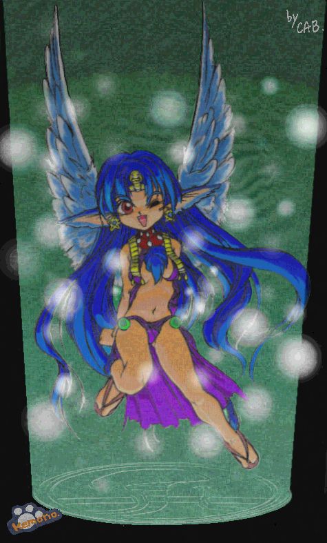 | ============================================================================== 【名 称】 CAB_06.JPG 【ふ】「ライバル登場!」 【登 録 名】 CAB_06.LZH 【制作者名】 CAB. 【作成方法】 LHA X CAB_06 で解凍した後、JPEGの見られる ツールで御鑑賞ください。 【検索キー】 CAB_06.LZH $JPG #FREEHAND ------------------------------------------------------------------------------- 【登場人物】 ネセト(スフィンクス、自称フェルティのライバル) 【転載条件】 連絡下さい。アーカイブの内容は変えないでください。 Q2や営利目的のネットはお断り致します。 【制作環境】 PC9821Xe10(40MB)+Windows95+kirimanさん作HP.EXE 32ビット版 +HD1.7G+GT−6500ART2 ============================================================================== ダウンロードしていただきありがとうございました。m(_ _)m 今回はなかなかテンポ良くアップできました(^^) ・・・と言いたいところですが、実は前作よりこっちの方が先に出来ていたんです。 ストーリー的にこっちの方が後なのでこうなってしまったと言う・・・(^^;; 98で描いた最初の作品なのでそこここに苦労と失敗の跡があります(;_;)トホホ さて、今回はスフィンクス娘シリーズ(?)の第三弾です。 「ライバル登場!」と言っても「ギガ○○ス」では無いので注意。 ・・・て、誰も知らないので却下(笑) −−−−−−−−−−−−−−−おはなし−−−−−−−−−−−−−−−−−−−− スフィンクスの学校の課題でなぞなぞの修行に日本へやってきたフェルティでしたが 案の定誰にも相手にされず行き倒れてしまいました。 「うう、あたしって結構不幸かも・・・」 そこへたまたま通りかかった高校生の健二君 「ち、ちょっといいですか・・・?」 「うん?」 「あたしとなぞなぞ勝負しません?」 「はあ」 「それじゃ第一問、下は大火事、上は・・・」 「おふろ」 「う・・・、そ、それじゃ、それじゃ第二問です、入り口はひとつ・・・」 「ズボン」 「むー、じゃあ第三問、つ・・」 「おふろのふた」 「や〜ん、せめてもうちょっと考えてから答えてよ〜」 「だって、そんな問題小学生でも恥ずかしくて出さないと思うんだけど・・・」 「む〜!わかりました!あたしにもスフィンクスのプライドがあります! と〜っておきの問題を行きますからね、いいですか!? 朝は四本足、昼は二本足そして夜は三本足で歩く生き物は何でしょう?」 「・・・・・・・人間」 「あ〜ん」 「だから、そんな問題小学生でも知ってるって・・・」 そのとき、急にフェルティの体が光を発し始めました 「あっ!?しまった、この問題は・・・」 それは、いにしえの呪われた問題。 この問題を解かれたスフィンクスは解かれた相手の願いを一つかなえなくてはいけない という禁断の問題なのでした。 「え〜ん、そういう訳でお願いごとを一ついってくださぁい」 「・・・て、そんなこと急に言われても・・・」 ”ぐ〜〜〜〜〜〜〜〜〜〜〜ぅ” そのとき、フェルティのおなかが盛大に鳴りました。 「ごっ、ごめんなさい、ここのところたいしたものを食べてないから・・・」 「あはは、じゃあ、とりあえず僕のところに来なよ、たいした物はないけど。」 「えっ!?・・僕のところに来なよって、僕のところに来なよって・・・・ ・・・・・・もしかして、プロポーズですかぁ!?」 「は!?」 フェルティがとんでもない勘違いをした瞬間、稲妻のような光がフェルティに落ちました。 「うわっ!?」 「ひゃっ!?」 そしてそれは来た時と同じように唐突に消えました。 「あ・あの・・叶っちゃったみたいです・・・お願い・・・」 「え、えぇ〜〜っ!!だって、僕のところにって言うのは家に来るっていうだけで 他の意味なんか無いのに」 「え〜っ!?そうなんですかぁ?あたしはてっきり・・」 「そんな初対面の女の子にいきなりそんなこと言わないよ〜!!」 「むー・・・考えてみればそうよね」 「そうそう」 「でも、叶っちゃったらそのお願いは絶対なんですぅ〜」 「ええ〜っ」 「あの・・と、言う訳でこれから宜しくお願いしますね」 「ええ〜っ」 そんな訳で、フェルティの勘違いのせいで健二の家に家族が一人増えたのでした。 さて、健二の家で久しぶりのご飯を食べさせてもらい、一息ついたフェルティでしたが 「わっ!?ちゃぶ台が!?」 「え?」 フェルティが見ると今ご飯を食べるのに使ったちゃぶ台の上に紋章のようなものが光って いるのが見えました。 「あ・・・この印は・・・・」 次の瞬間、その紋章から上に光が伸びたかと思うと、その中から女の子が・・・ 「フェルティー!ひさしぶりなのだー」 「ネ、ネセト!?なんでここに?」 「知り合い?」 「そうなのだー、ネセトはフェルティのライバルなのだー」 「ちーがーうー!」 「今回は、ライバルの様子を偵察しにきたのだ それにしても狭いところに住んでるのだなー よーしここはネセトがライバルのために一肌脱ぐのだ!」 「ちょっと!何する気なのっ?」 「最北の女神、ウトの名において、力よ集まるのだぁ!」 「うーむ、やっぱりこの家って狭いよ