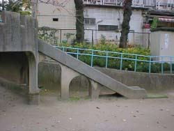 この地域は坂が多いのだが、この公園の場合、土地を削って出来た坂道との高低差をうまく利用し、このような空間を作り上げている。その発想と、それを実現する為に尽くされたであろう様々な努力を賛辞したい。素晴らしい。