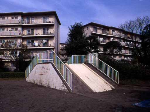 抽象幾何形に分類したが、コンクリートで土台を作り、その上に幅広の滑り面を設けた、斜面系とも判断できる。