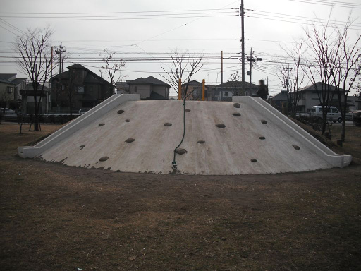 築山に設置されたコンビネーション遊具は、90年代以降に設置されたのではないかと思われる。一方、扇型に広がる